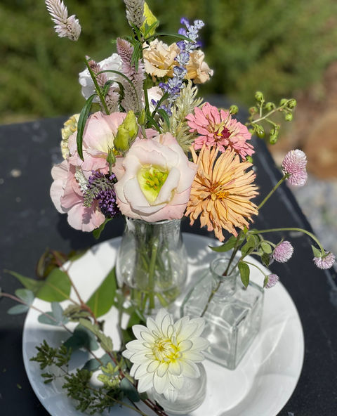At our flower farm, we are dedicated to growing and selling seasonal local flowers. We love to create stunning arrangements, ensuring each piece features blooms sourced from our farm and local partners. We also specialize in offering a la carte florals for small weddings.